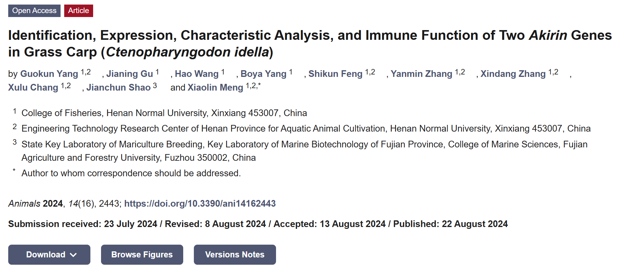 本研究结果已在SCI二区期刊《Animals》发表。课题组杨国坤老师为第一作者,孟晓林老师为通讯作者。