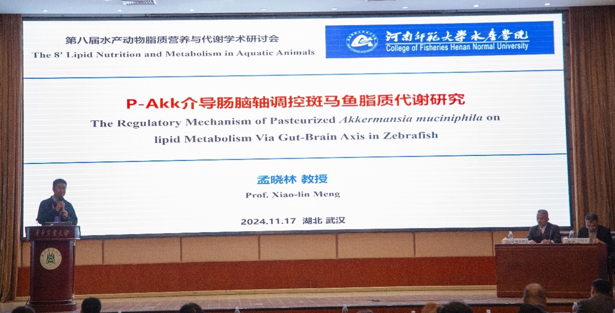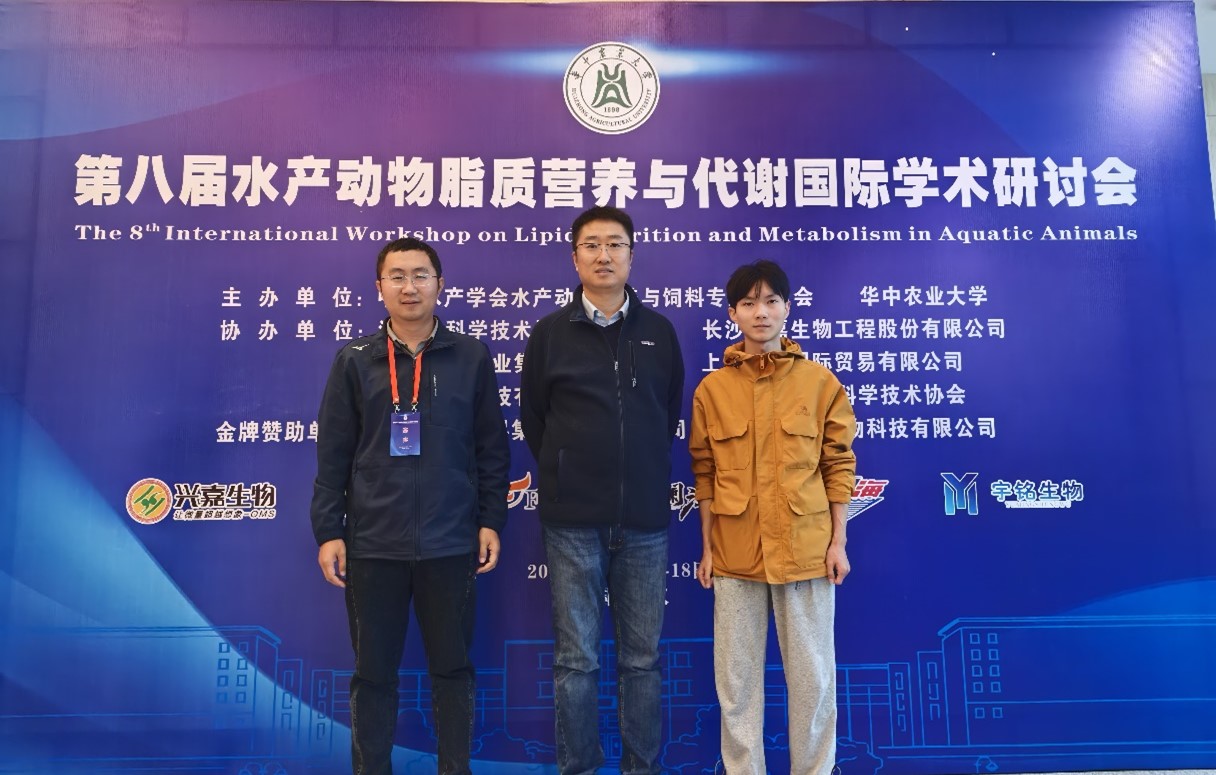 本届论坛秉承“强化特色、突出优势、聚焦机制、服务产业”的理念,共安排42个大会报告。在会议期间,与会者围绕“脂质精准营养与多学科交叉融合”为会议主题,展开了全面系统的讨论。课题组孟晓林、杨国坤老师和黄真屹博士参加此次会议。会议上,孟晓林老师做了“P-Akk介导肠脑轴调控斑马鱼脂质代谢研究”的大会报告。本次会议不仅为全国水产动物脂质代谢领域提供科研成果的交流平台,也为课题组师生提供宝贵的交流学习机会。参加此次论坛的师生表示收获颇丰,通过与学界、业界专家学者的深入交流,大家不仅开拓学术视野,同时也更加明确未来的科研发展规划与研究方向。