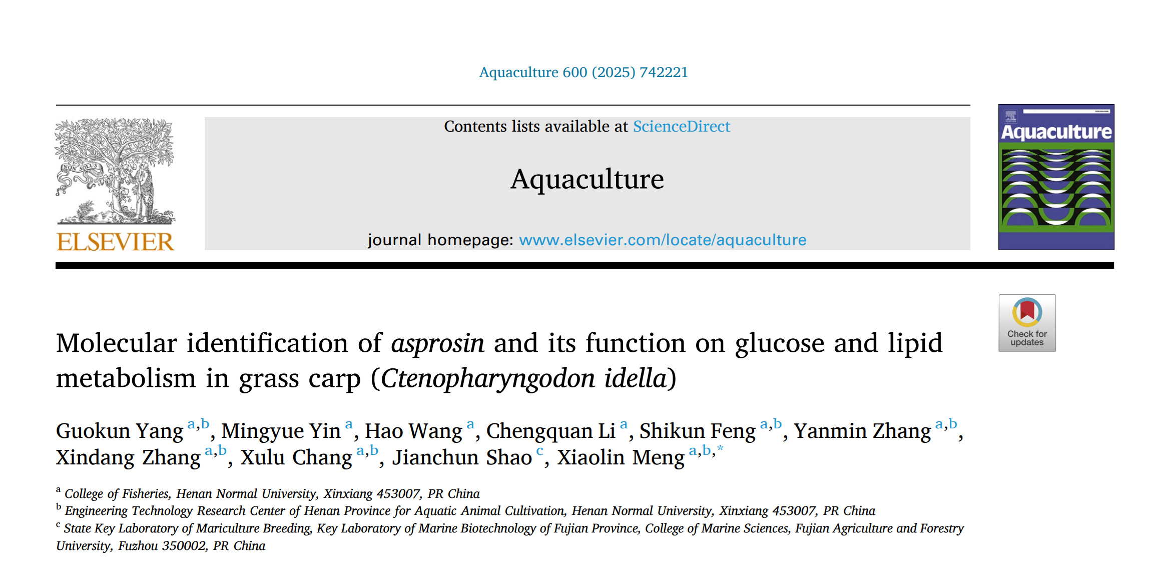 相关研究成果已在一区期刊《Aquaculture》上在线发表。课题组杨国坤老师为第一作者,孟晓林老师为通讯作者。