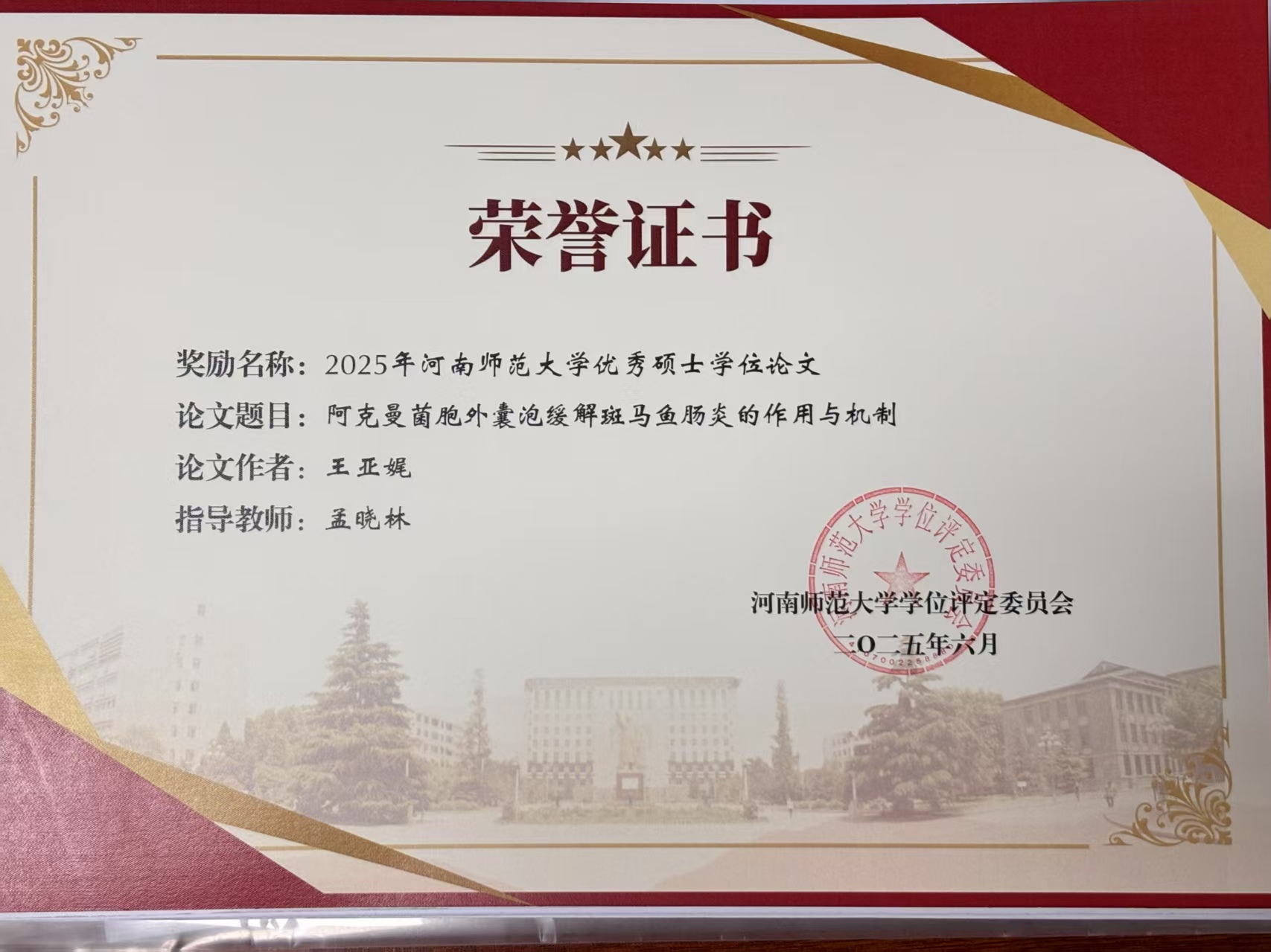 2022级硕士毕业生王亚娓同学获2025年伟德官网下载苹果版优秀硕士学位论文