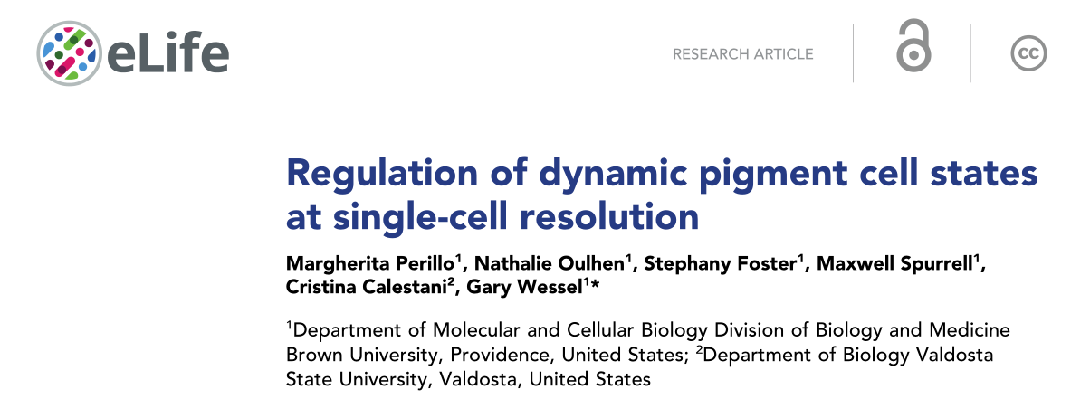 色素细胞具有不同的作用,通常受到严格的进化选择。探讨了紫海胆色素细胞的动态调控,发现这是一种新的色素沉着模型。利用单细胞测序技术,发现胚胎中的色素细胞分离成两个不同的群体,一个是有丝分裂簇和一个是有丝分裂后簇。Gcm对于色素相关基因的表达至关重要,但只在这些细胞中瞬时表达。发现了色素细胞表达的特异基因,并用双荧光原位杂交检测它们的空间表达。这些基因包括fmo家族的新成员,它们在胚胎中的色素细胞和成体中体腔细胞中选择性地表达。