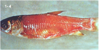 (1)“红肌肉”型:以肌肉出血为主,与此同时鳃瓣因严重失血,呈“白鳃”,而外表无明显的病变。