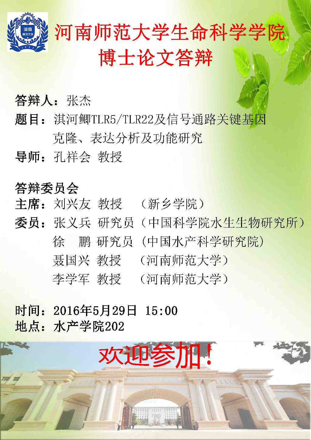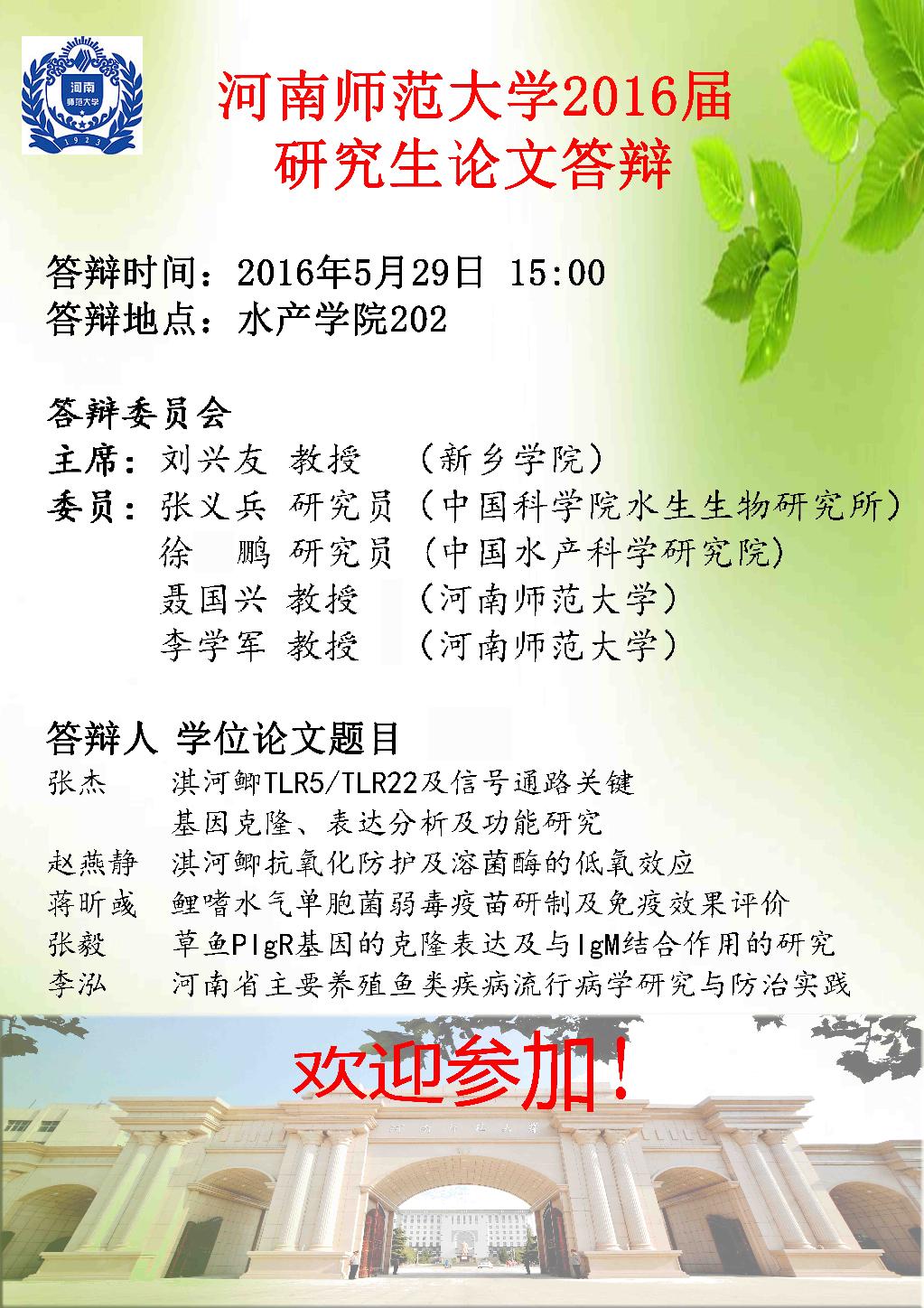 水产动物医学团队2016届研究生论文答辩会定于2015年5月29日下午3:00,水产学院202会议室,欢迎广大师生参加指导!
