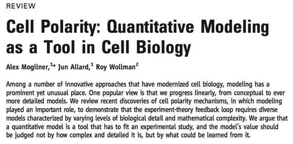 A. Mogilner et al. Cell Polarity: Quantitative Modeling as a Tool in Cell Biology (细胞极性:定量模型作为细胞生物学的工具)