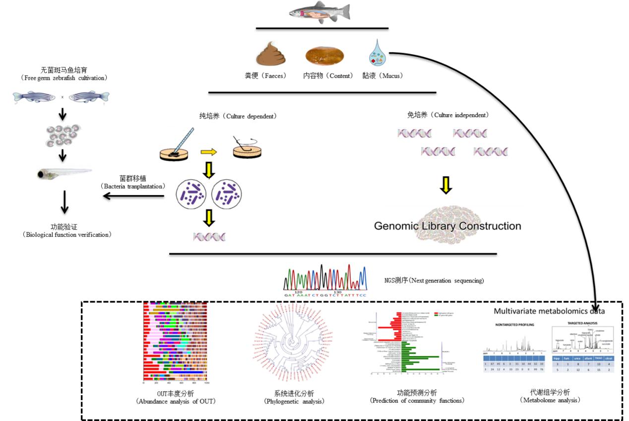 近日,由我团队孟晓林、聂国兴教授撰写的综述《鱼类肠道菌群影响因子研究进展》在水产学报2019年第1期全文发表(2019,43(1):143-155)。该综述集中讲述了肠道菌群在维持肠道健康、促进肠道发育、抵抗病原入侵、调节机体能量吸收和脂质代谢过程中发挥的重要作用。详细阐明了在鱼类学研究中,由于种类繁多、食性差异大、生存环境复杂多变而导致鱼类肠道菌群研究面临的巨大挑战。在总结了常见鱼类肠道微生物组成的基础上,着重介绍了鱼类饵料组成、水环境因子、物种、基因型、发育阶段、养殖模式及投喂策略对鱼类肠道菌群影响的相关研究进展,并对目前研究中存在的问题进行了剖析,以期为鱼类肠道菌群研究提供一定的参考依据。