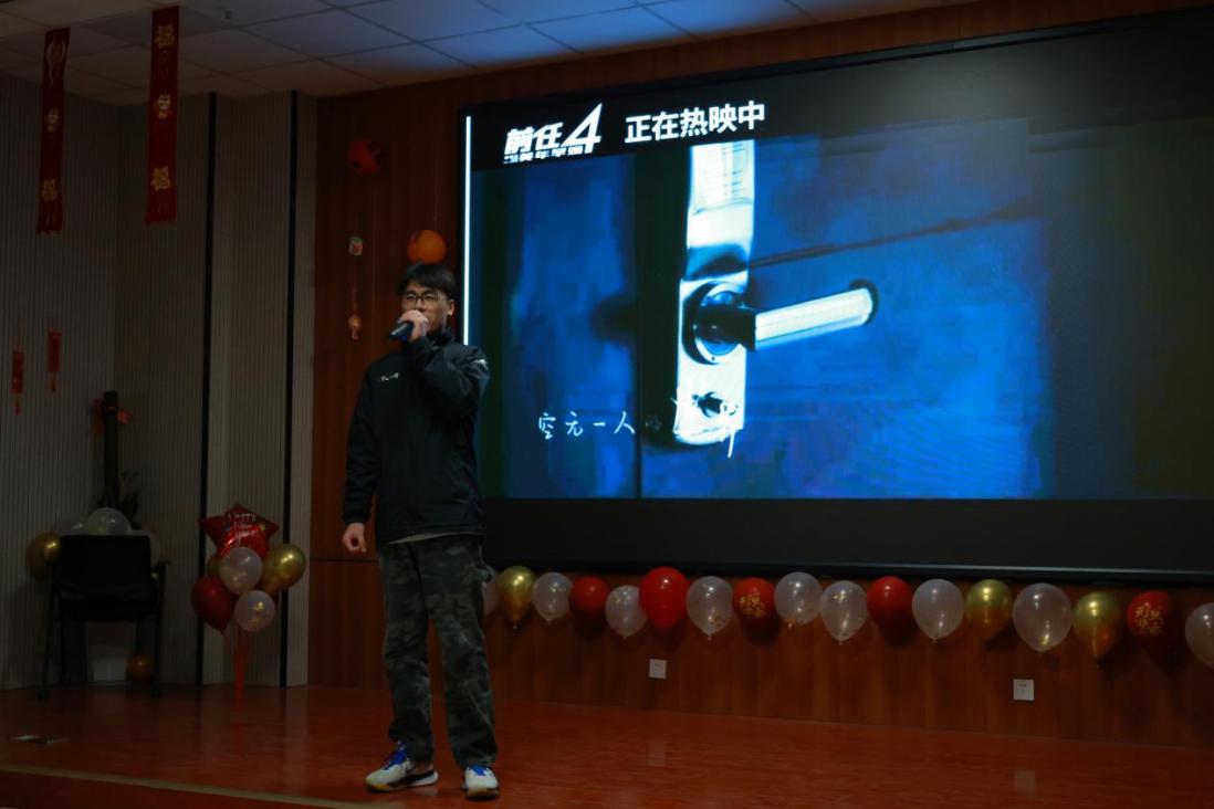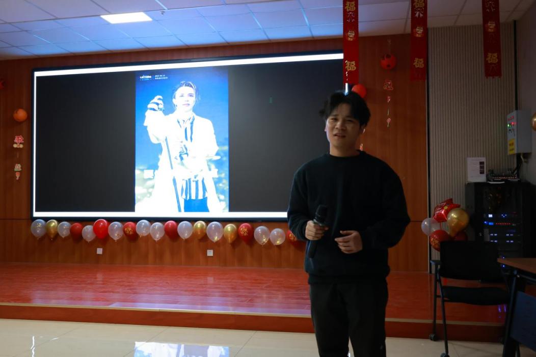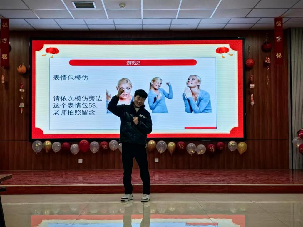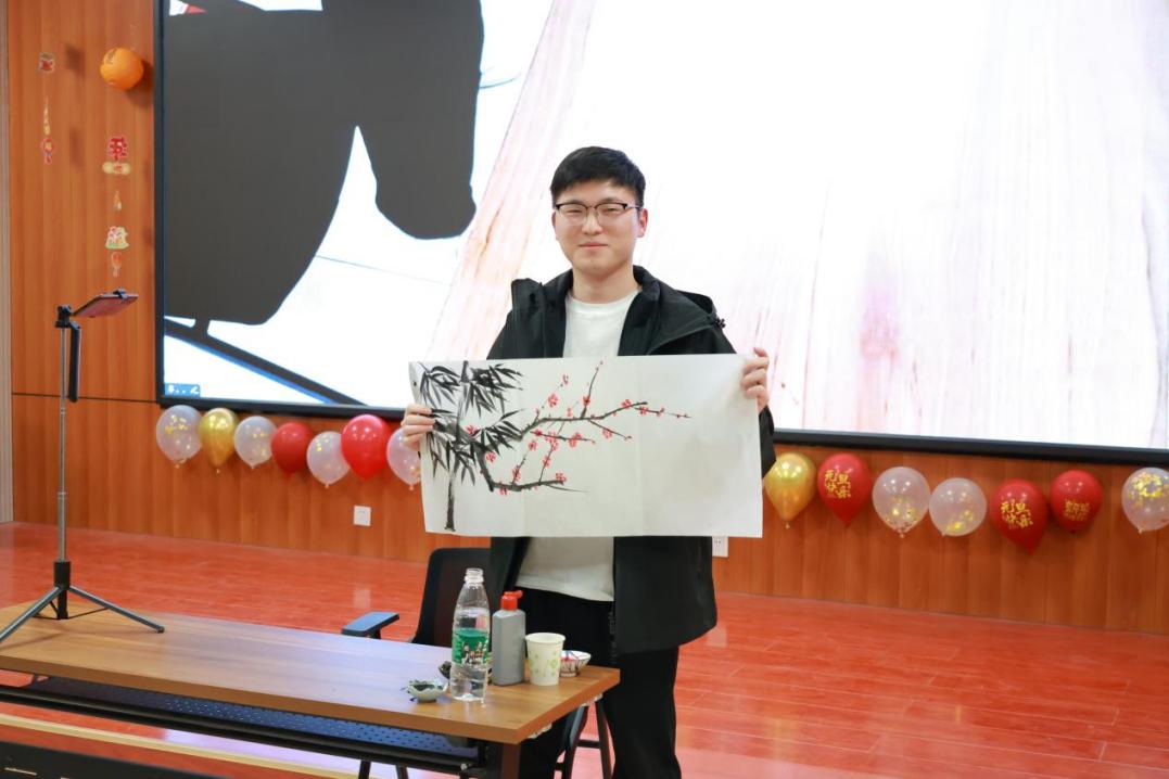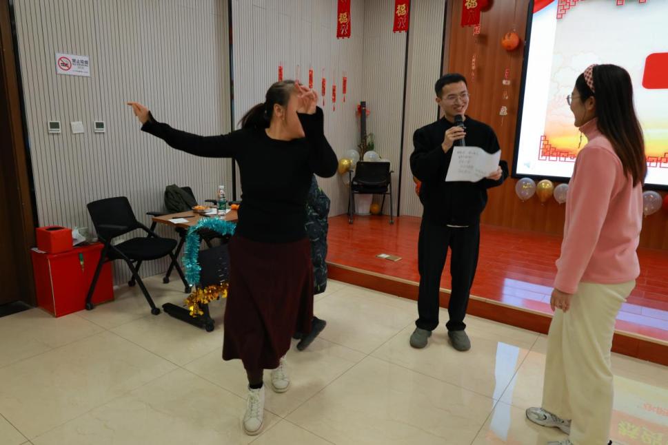 互动游戏击鼓传花!鼓点响起,花在手中传递。游戏既能增添欢乐,又能让大家展示才艺,每个人都肆意享受这个有趣的过程!鼓点停止时,花停留在了研究生贾孟涛手中,在笑声中接受了表情包模仿的游戏惩罚。