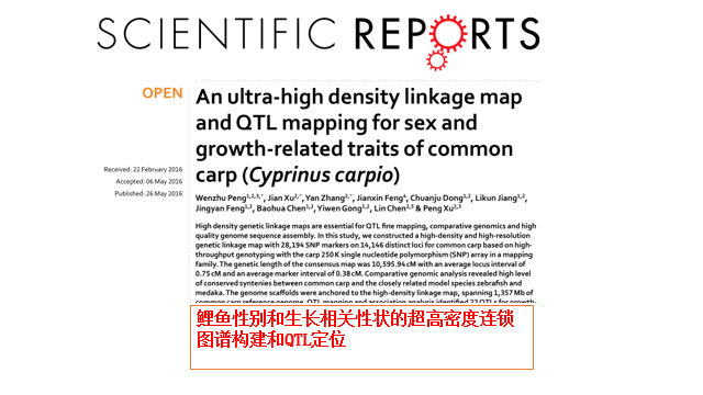 随后,两位研究生进行了文献汇报。首先陈军平对文献An ultra-high density linkage mapand QTL mapping for sex and growth-related traits of commoncarp (Cyprinus carpio)进行了汇报,主要是针对鲤鱼性别和生长相关性状构建超高密度连锁图谱和QTL定位。