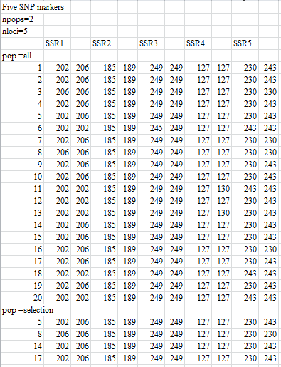 b.第2行若仅有一个群体,命为“npops=1”,若需分析多