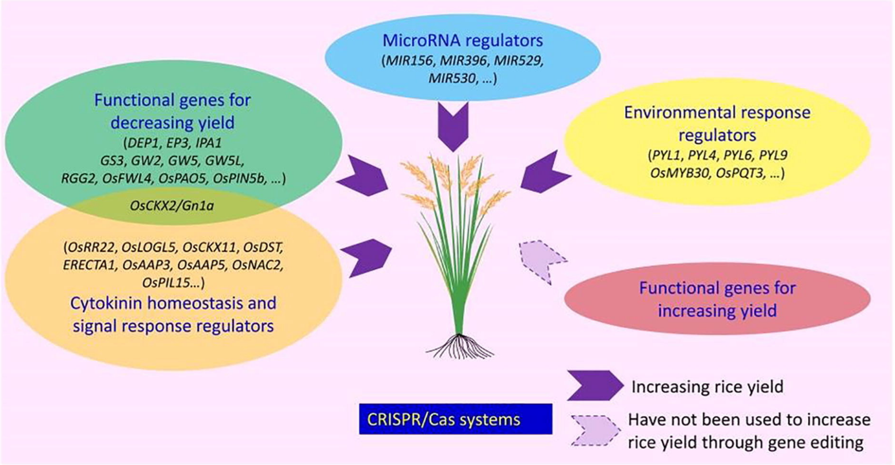 在过去的几十年里,传统的分子育种方法(例如杂交育种)为提高水稻产量做出了巨大的贡献。然而,随着人口的不断增加和环境条件的不断恶化,迫切需要培育环境友好型和资源节约型水稻品种,以实现农业的可持续发展和粮食安全。基于CRISPR/Cas的基因组编辑技术因其简单、高效和多功能性,正在掀起一场作物改良的浪潮。