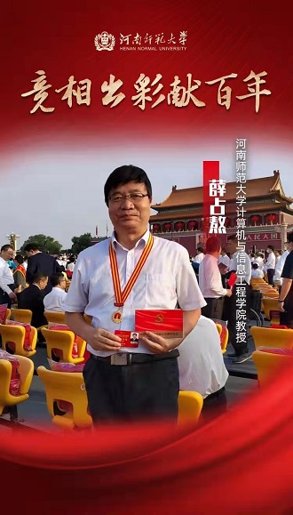 适逢雨后初霁,北京天安门广场上短暂的阴雨让清晨的天空焕然一新。昂扬奋进的党的赞歌声声入耳,电子屏幕依次翻过中国共产党的成长岁月,百响礼炮震彻云霄,彰显着中国共产党波澜壮阔的百年征程和历久弥新的百年初心。薛占熬教授作为教育部61位“全国先进模范人物代表”受邀参加本次庆祝大会,现场聆听习近平总书记重要讲话,观看建党百年盛大庆典。