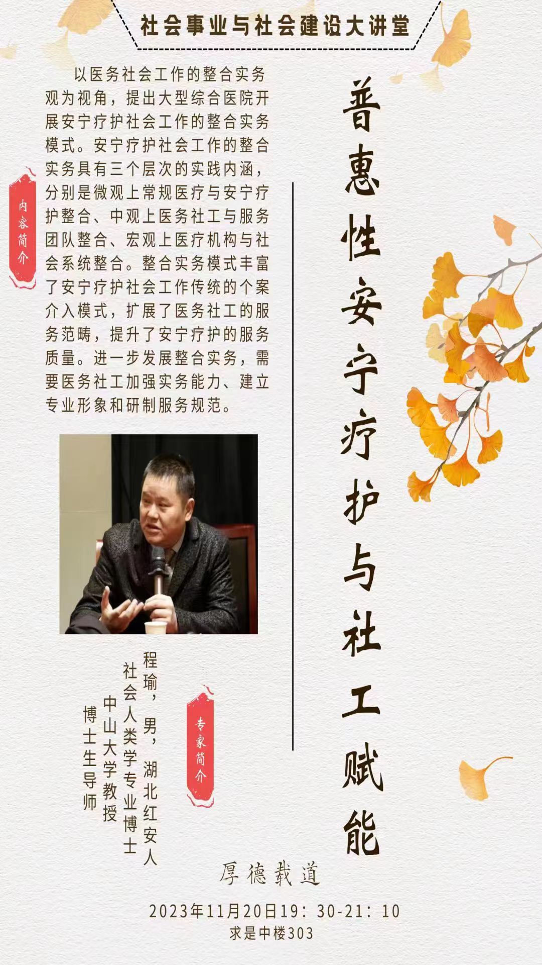 讲座:11月20日 普惠性安宁疗护与社工赋能