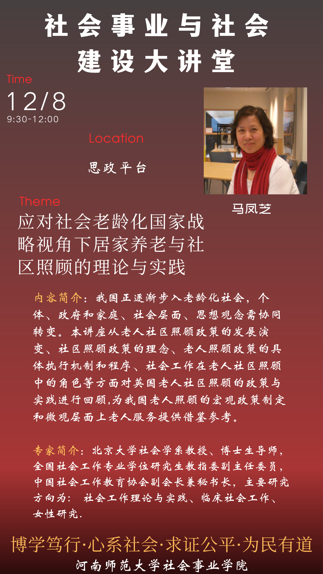 讲座:12月8日 应对社会老龄化国家战略视角下居家养老与社区照顾的理论与实践