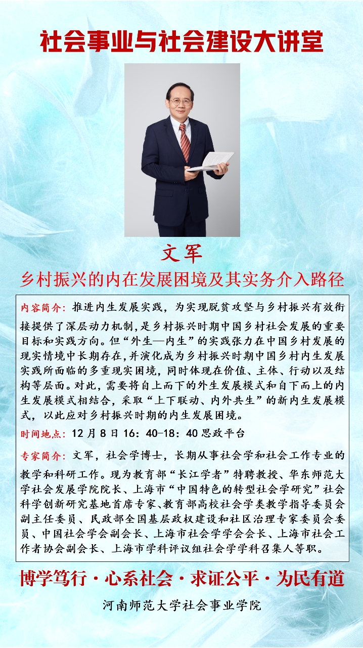 讲座:12月8日 乡村振兴的内在发展困境及其实务介入路径