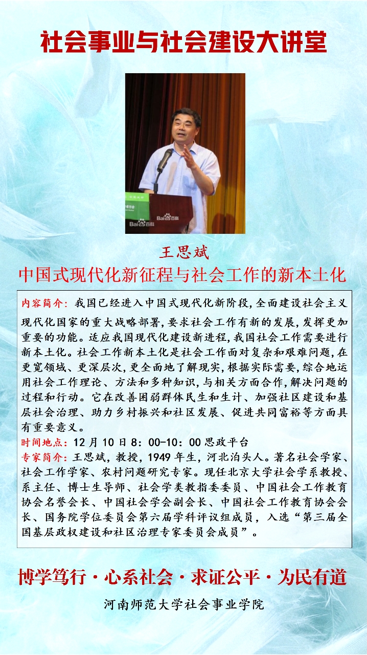 讲座:12月10日 中国式现代化新征程与社会工作的新本土化