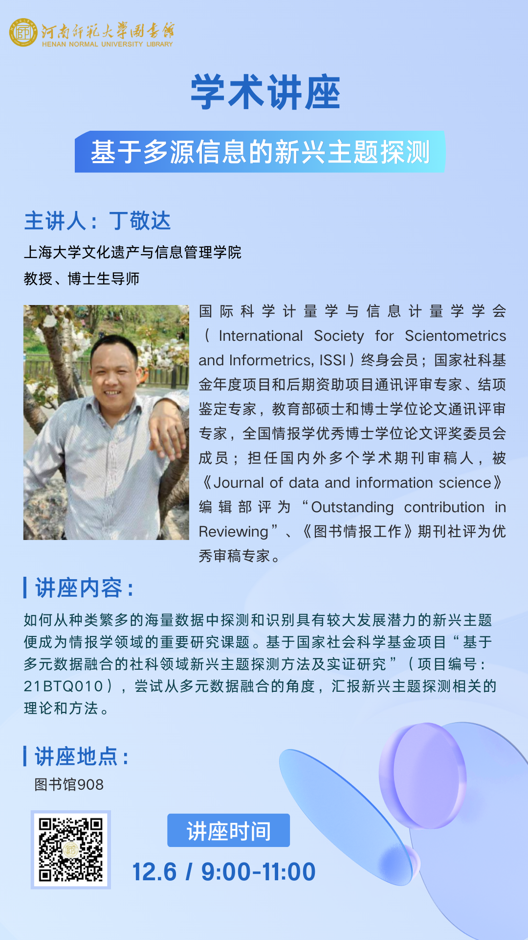 讲座:12月6日 基于多源信息的新兴主题探测