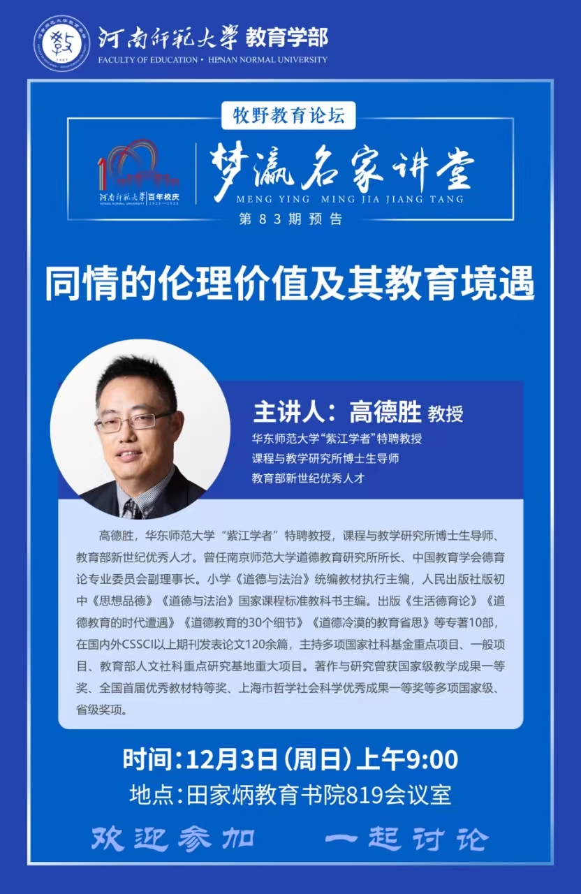 讲座:12月3日 同情的伦理价值及其教育境遇