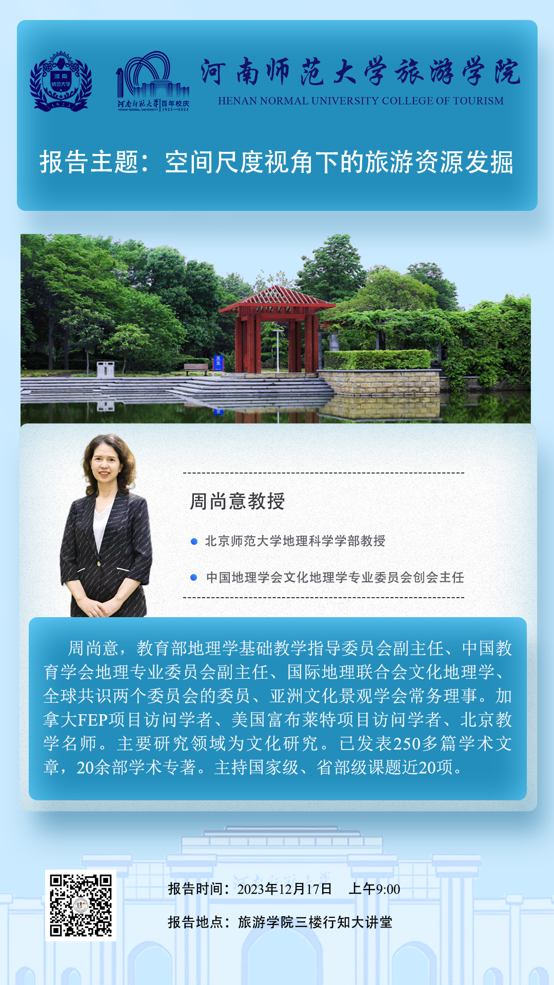 讲座:12月17日 空间尺度视角下的旅游资源发掘