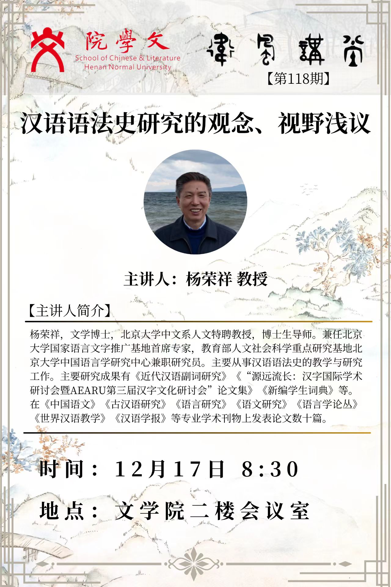 讲座:12月17日 汉语语法史研究的观念、视野浅议