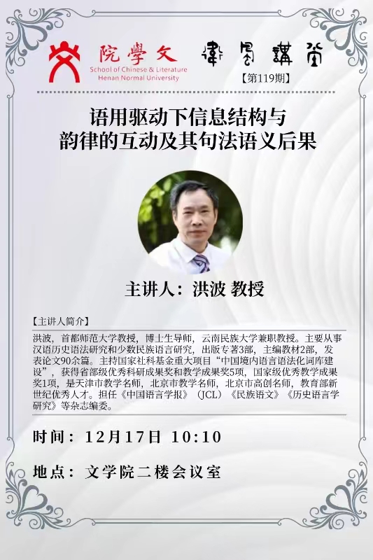 讲座:12月17日 语用驱动下信息结构与韵律的互动及其句法语义后果