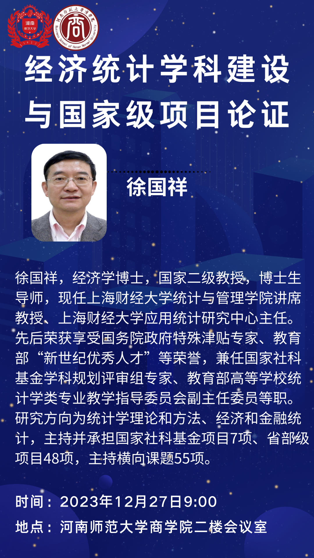 讲座:12月27日 经济统计学科建设与国家级项目论证