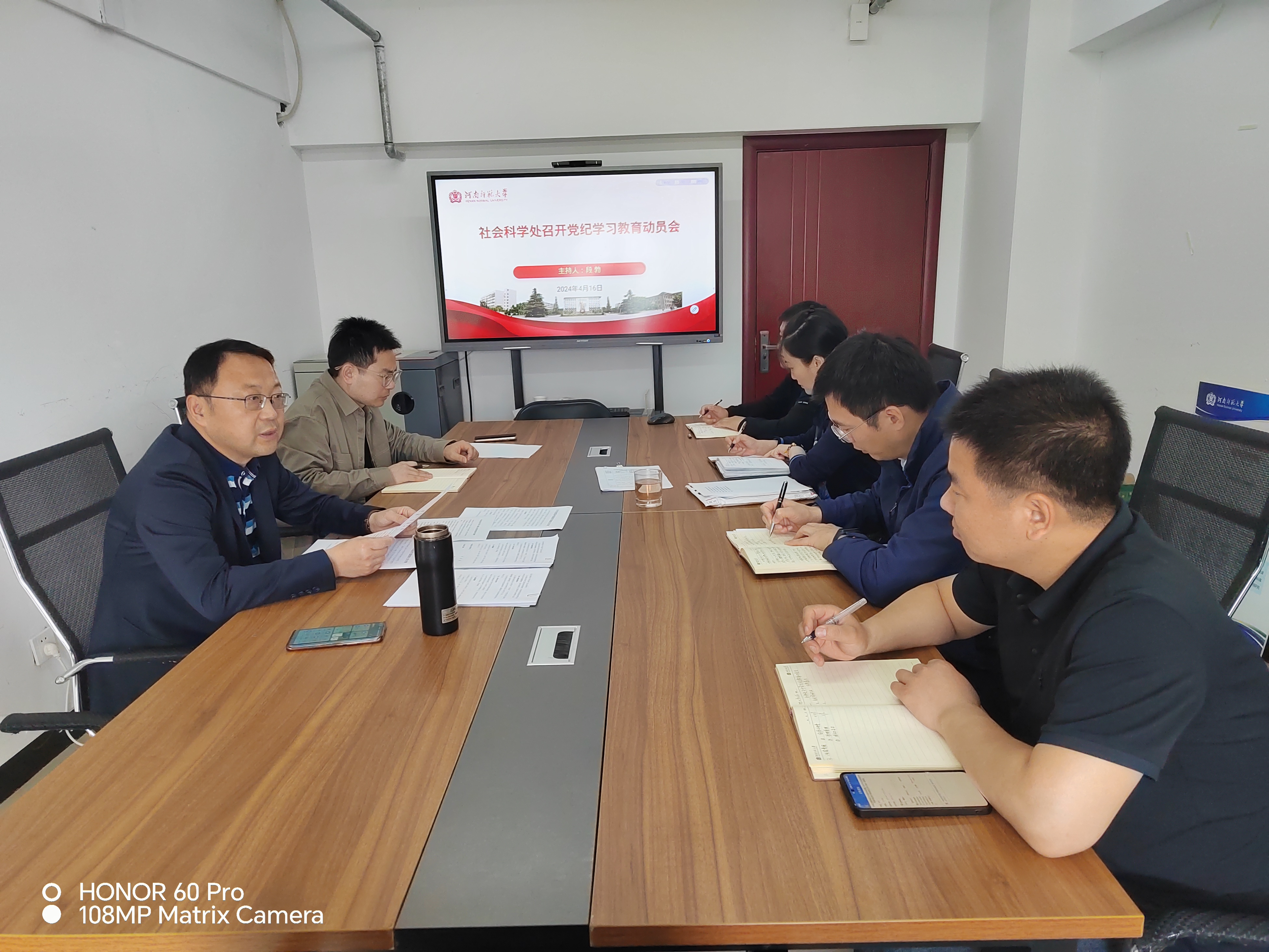 2024年4月16日上午,社会科学处在致远楼509室召开了党纪学习教育工作动员会,社会科学处全体人员参加,社会科学处处长段勃主持此次会议。 段勃强调,根据学校党委的指示精神,社科处全体人员要深入学习领会习近平总书记关于党纪学习教育的重要思想,准确把握党纪学习教育的学习重点,在学习《中国共产党纪律处分条例》上下功夫、见成效,坚持原原本本学习,逐章逐条学、联系实际学,推动《条例》入脑入心,教育引领党员干部受警醒、明底线、知敬畏,真正使学习党纪的过程成为增强纪律意识、提高党性修养的过程。要坚持以训助学,深化《条例》理解运用;要注重融入日常、学用结合。要把学习贯彻《条例》情况作为对照检查的重要内容,党员及党员干部要把自己摆进去、把职责摆进去、把工作摆进去,实事求是查摆自身不足,开展批评和自我批评,切实抓好整改落实。 社会科学处全体人员纷纷表示,今后将继续认真研读学习党纪条例,结合社科管理服务实际,推动我校社科事业不断繁荣发展! (社会科学处 张续) |