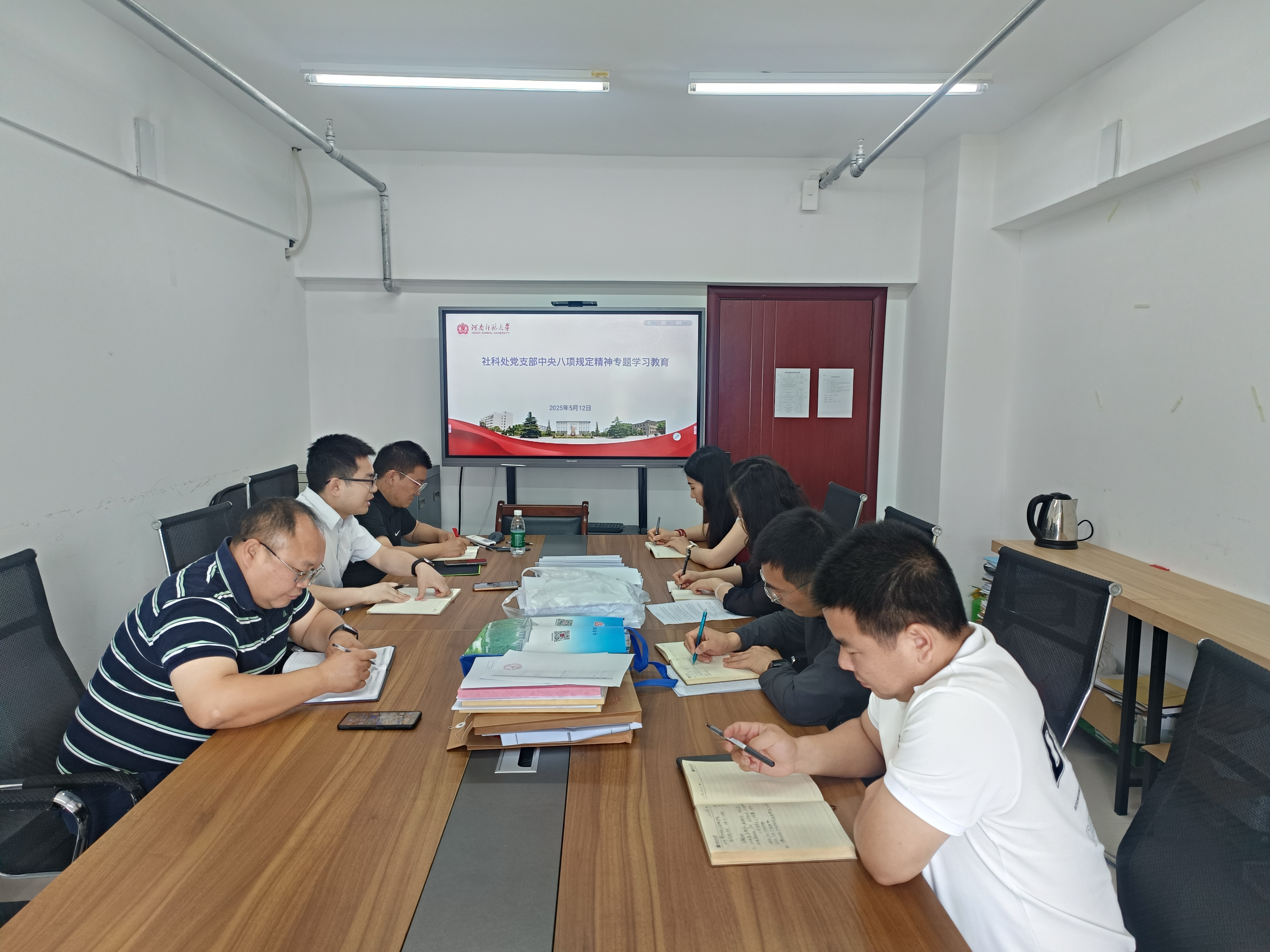为持续深化作风建设,5月12日上午,社会科学处党支部在致远楼509召开中央八项规定精神专题学习教育。会议由社科处党支部组织委员张继汝主持,宣传委员张续记录,社会科学处全体党员参加会议。 会上,张继汝副处长带领全体同志研读中央八项规定及实施细则文件,结合高校科研管理职能,重点剖析科研经费规范使用、学术活动廉洁风险防控等典型案例。他强调,社科处作为高校哲学社会科学研究管理服务部门,要始终以八项规定精神为标尺,在科研项目评审、学术会议举办、基层调研等工作中严守纪律要求,切实做到精简流程提效能、深入院系解难题、规范管理促发展。 全体成员通过专题学习会、警示教育案例剖析、廉政风险自查自纠等形式,系统学习中央八项规定精神核心要义,结合科研管理服务职能开展研讨。后续将通过完善制度体系、强化日常监督,推动作风建设与科研管理工作深度融合,为学校人文社科高质量发展提供坚实保障。 此次会议进一步强化了部门成员的纪律意识和责任担当,为构建风清气正的科研生态、服务学校哲学社会科学高质量发展提供坚实保障。 |