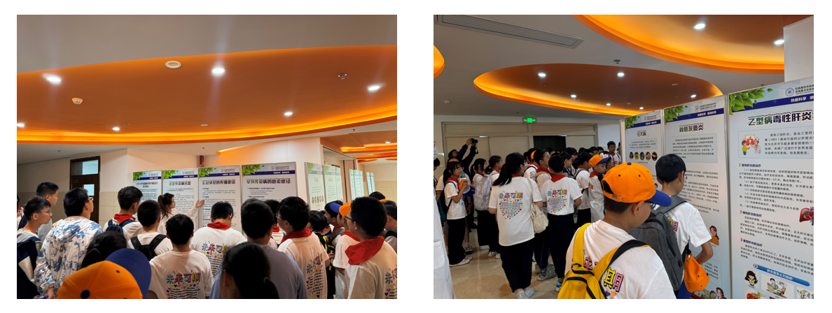 抗病毒性传染病创新药物全国重点实验室为此次的科普活动精心设置了三个活动展区,实验室部分博士和硕士研究生作为本次活动的志愿者担任讲解员和引导员。在传染病常识展区,通过展示板和图片,志愿者向附小师生们生动地介绍了传染病的定义、常见传染病的传播方式以及预防措施和治疗药物,帮助同学们掌握传染病防控基础知识,增强自我保护的意识。