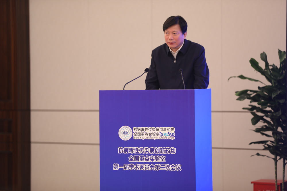 李卫东代表新乡市委市政府向出席会议的各位院士专家领导表示热烈欢迎,感谢各位亲临新乡为实验室的发展把脉问诊、出谋划策、贡献力量。他表示,抗病毒性传染病创新药物全国重点实验室始终坚持“四个面向”、紧紧围绕“健康中国”国家战略,以抗病毒创新药物研发为主线,形成了特色鲜明、优势显著的研究方向。成立一年多来,实验室取得了一系列重大科技成果,已经步入了高速发展的快车道。新乡作为实验室的所在地,坚决贯彻落实中央精神、省委要求,始终把支持和服务实验室发展作为重要任务、分内之职,在科研成果转化、高层次人才引育等方面深入开展合作,全力支持实验室打造抗病毒药物研发的国家战略科技力量。