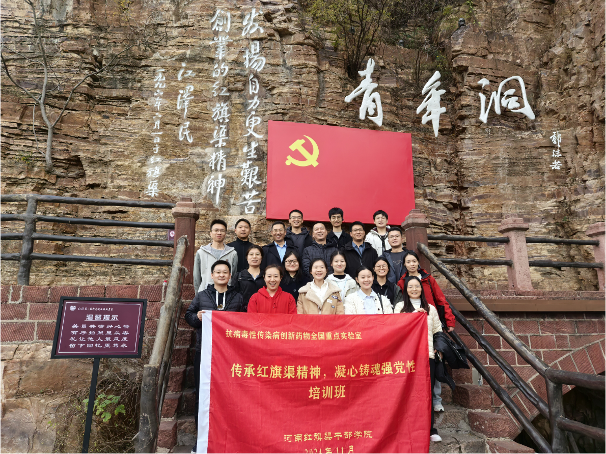 为深入学习贯彻习近平新时代中国特色社会主义思想和二十届三中全会精神,以创新谋改革,以改革促发展,提升党员队伍的凝聚力和战斗力,11月9日,抗病毒性传染病创新药物全国重点实验室党委组织实验室教工党员、各党支部支部委员赴红旗渠干部学院开展了“传承红旗渠精神,凝心铸魂强党性”的主题党日活动。