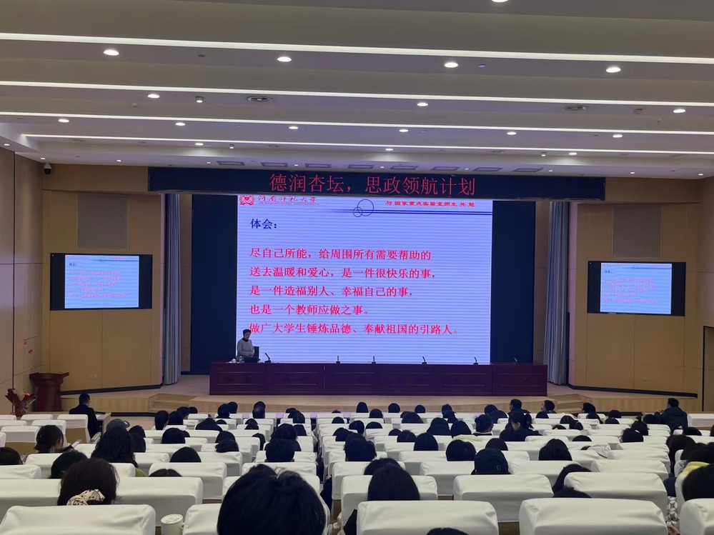 为贯彻落实全国教育大会精神,深入学习中国共产党伟德官网下载苹果版第七次代表大会部署,大力实施教育家精神铸魂强师行动,3月6日下午,抗病毒性传染病创新药物全国重点实验室在实训楼东报告厅开展了“开学师德第一课”活动。本次活动邀请首届“河南省教书育人楷模”获得者渠桂荣教授为实验室师生讲授 “争做国家栋梁”的专题报告,实验室班子成员、全体教职工和学生参加了本次活动,报告会由全国重点实验室副书记任富同主持。