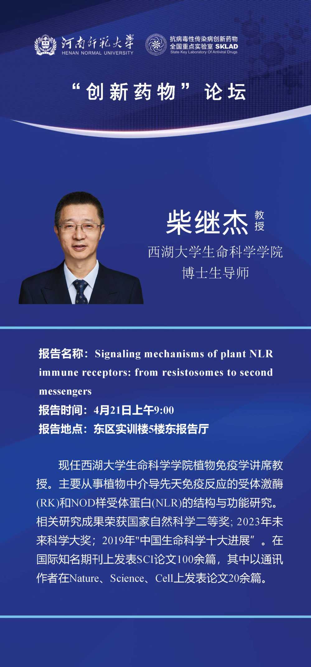 西湖大学生命科学学院教授柴继杰将应邀来我室讲学
