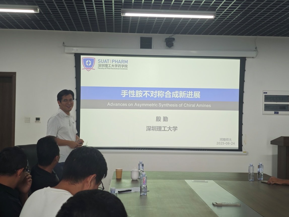 8月24日,应抗病毒性传染病创新药物全国重点实验室邀请,深圳理工大学殷勤教授为我校师生做了“手性胺不对称合成新进展”的学术报告。报告会在实训楼1611报告厅进行,由抗病毒性传染病创新药物全国重点实验室白大昌副教授主持,吸引了来自抗病毒性传染病创新药物全国重点实验室、化学化工学院、平原实验室的师生参加。