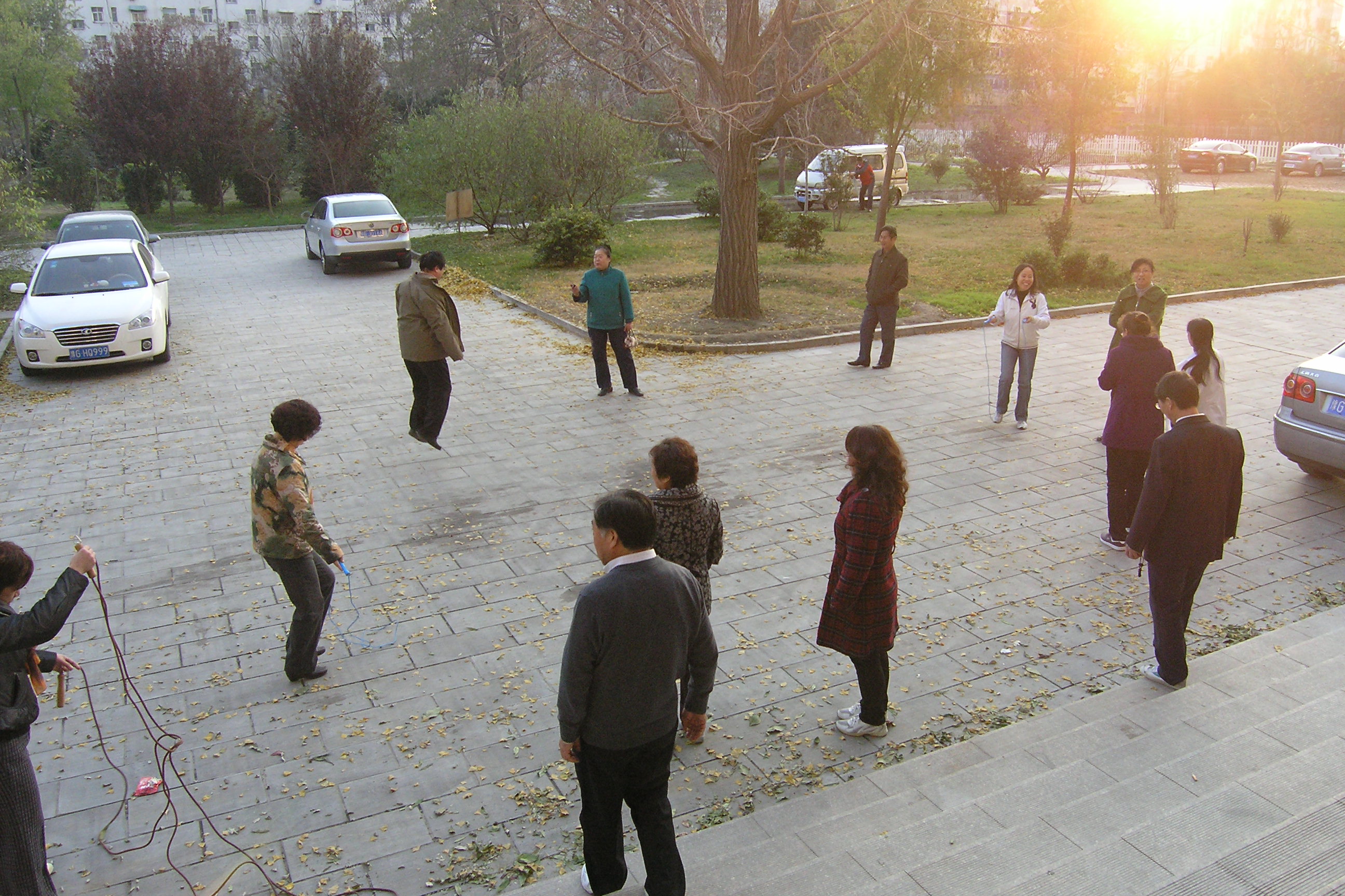 这次跳绳比赛,超过半数的教工参加了比赛,虽然气温忽然下降,但教职工对此项活动的热情很高,无论跳多跳少,无论姿势优美与否,大家都争分夺秒,勇超自我,欢声笑语弥漫在生物楼前。