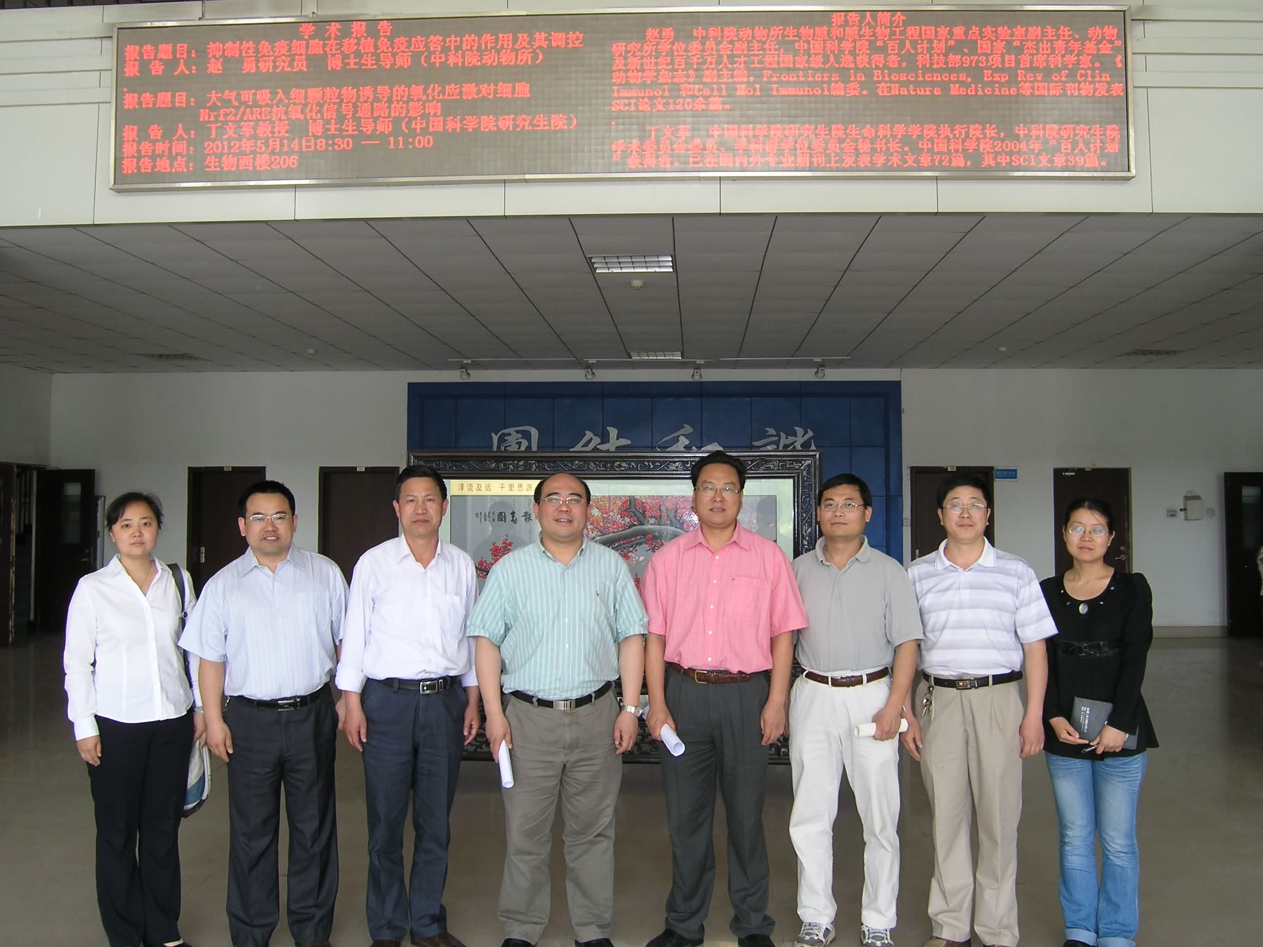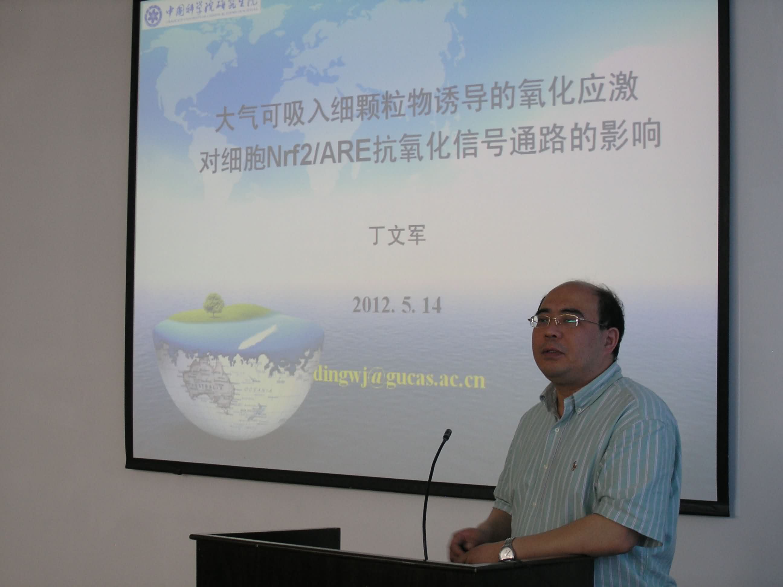 514日上午,应学院邀请,中国科学院研究生院生命科学学院执行院长、中科院研究生学院学术委员会委员、学科群学位委员会秘书长丁文军教授在我院二楼大会议室为学院师生做了题为“大气可吸入细颗粒物诱导的氧化应激对细胞Nrf2/ARE抗氧化信号通路的影响”的学术报告。报告会由李卫国教授主持。聂国兴副院长,省特聘教授王文晟、校特聘教授李效宇、孔祥会,细胞生物学、免疫学等学科教师、研究生及本科生聆听了此次报告。