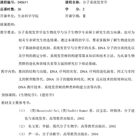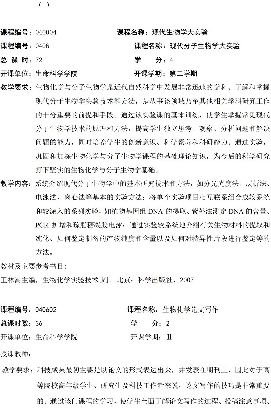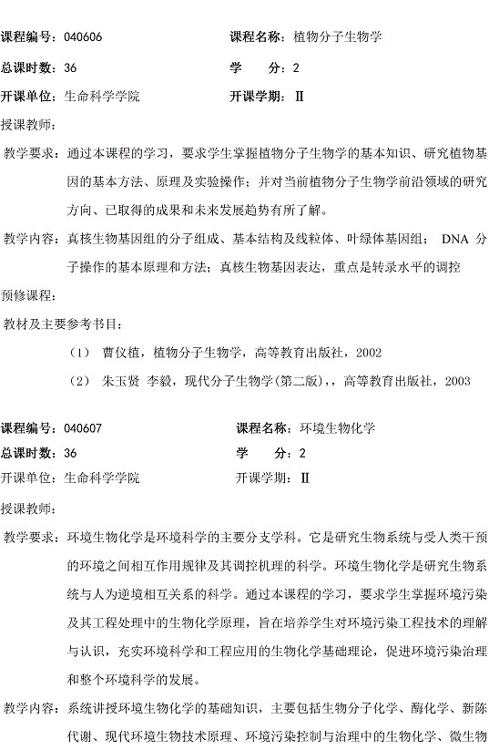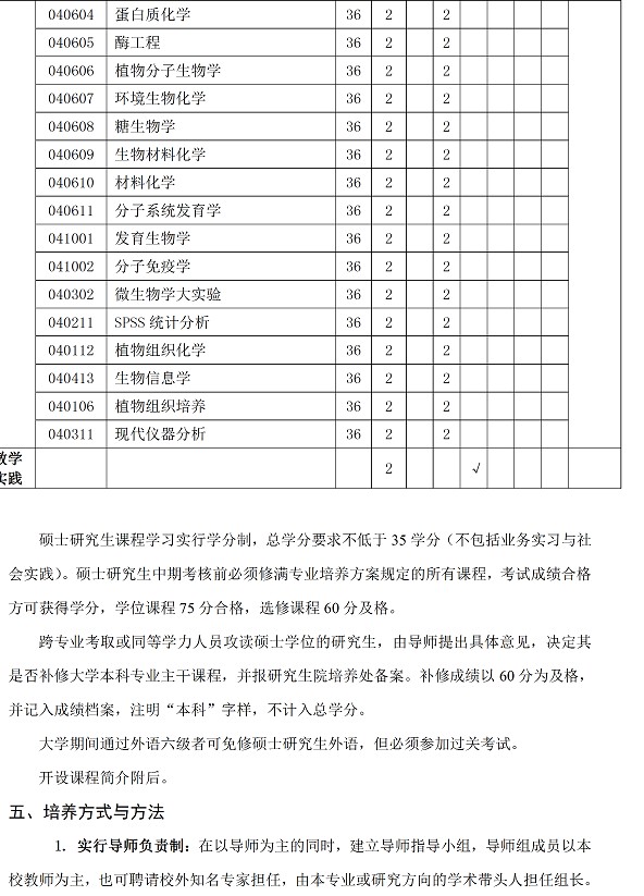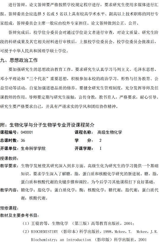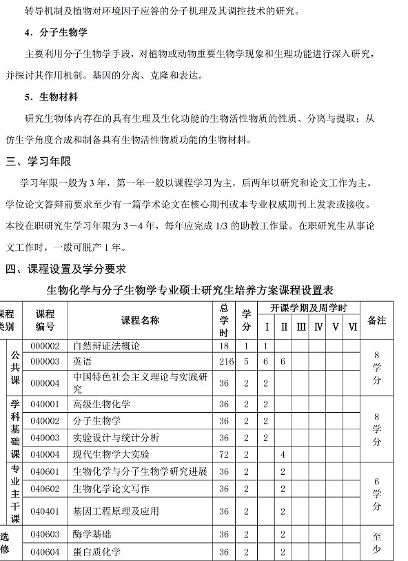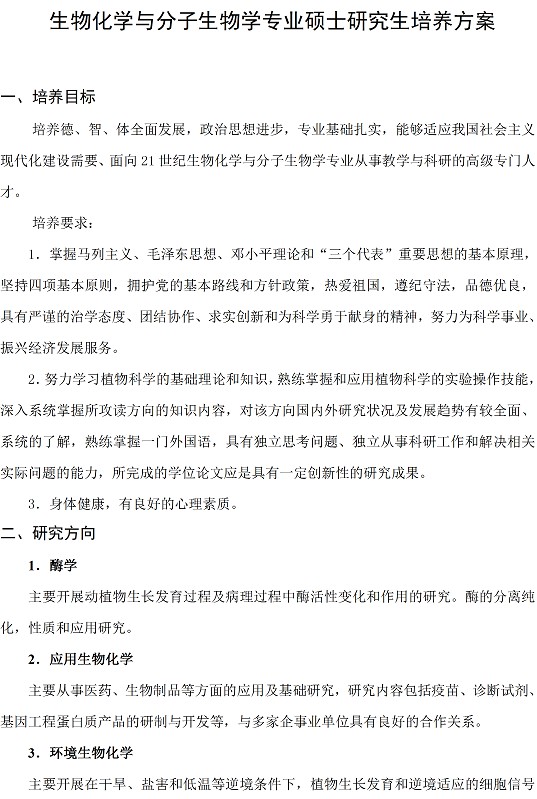 生物化学与分子生物学专业硕士研究生培养方案