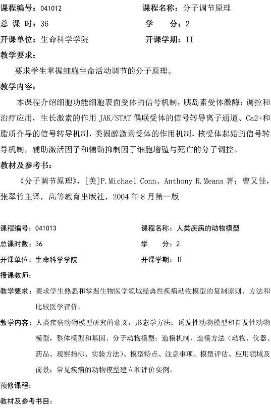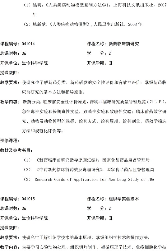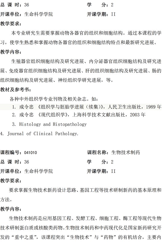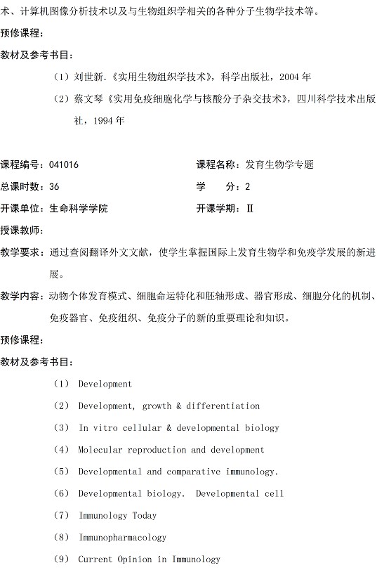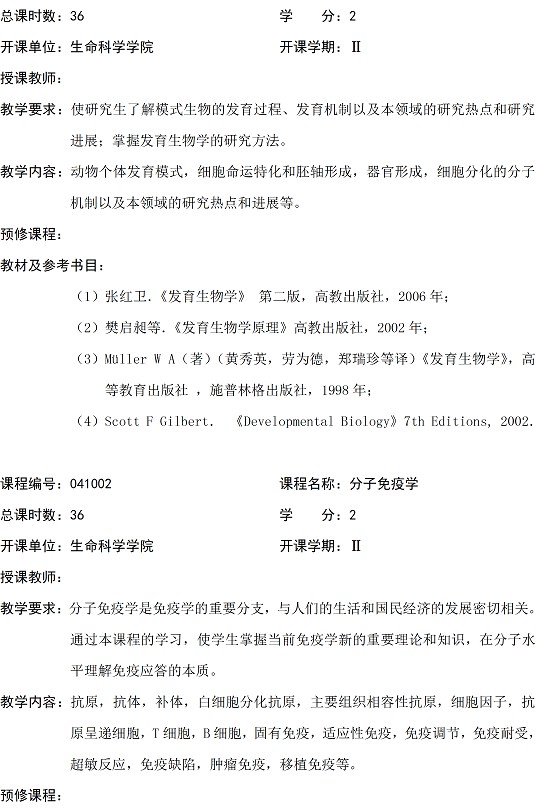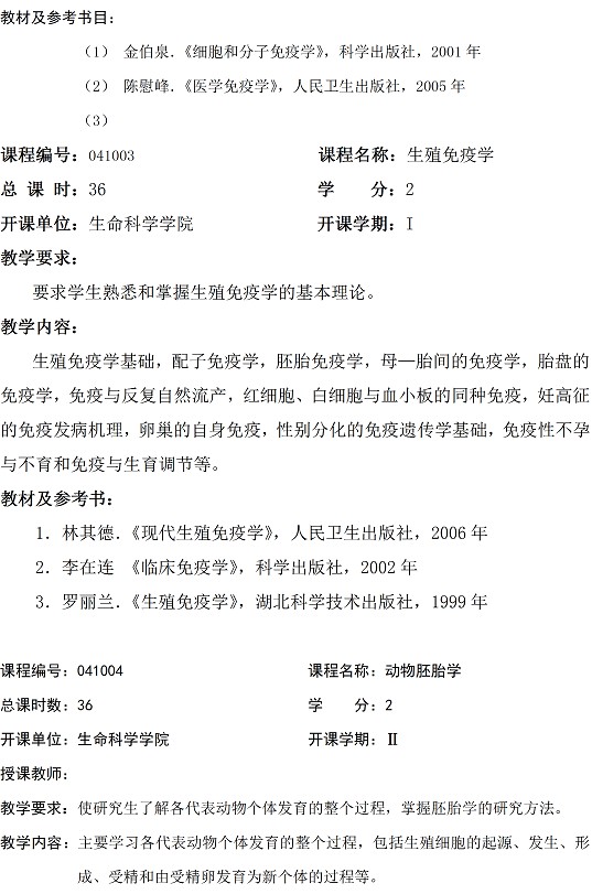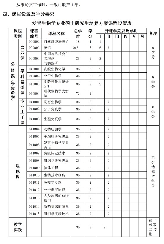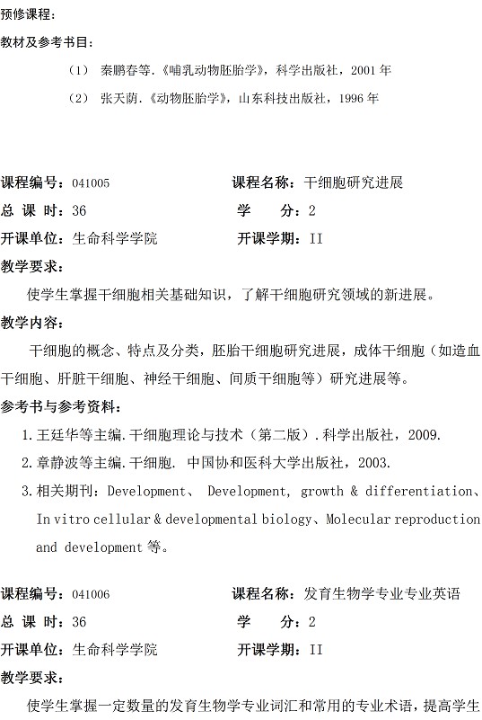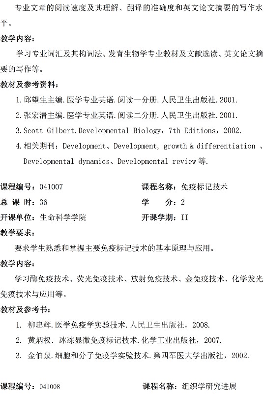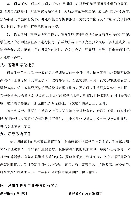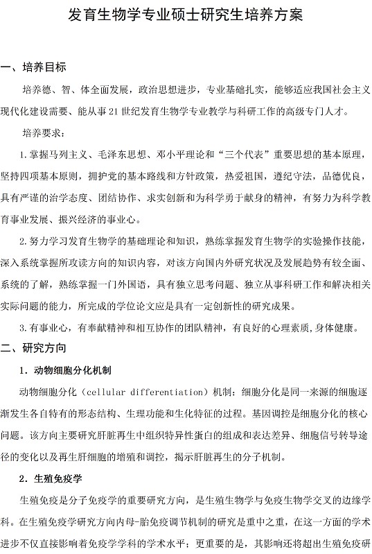 发育生物学专业硕士研究生培养方案