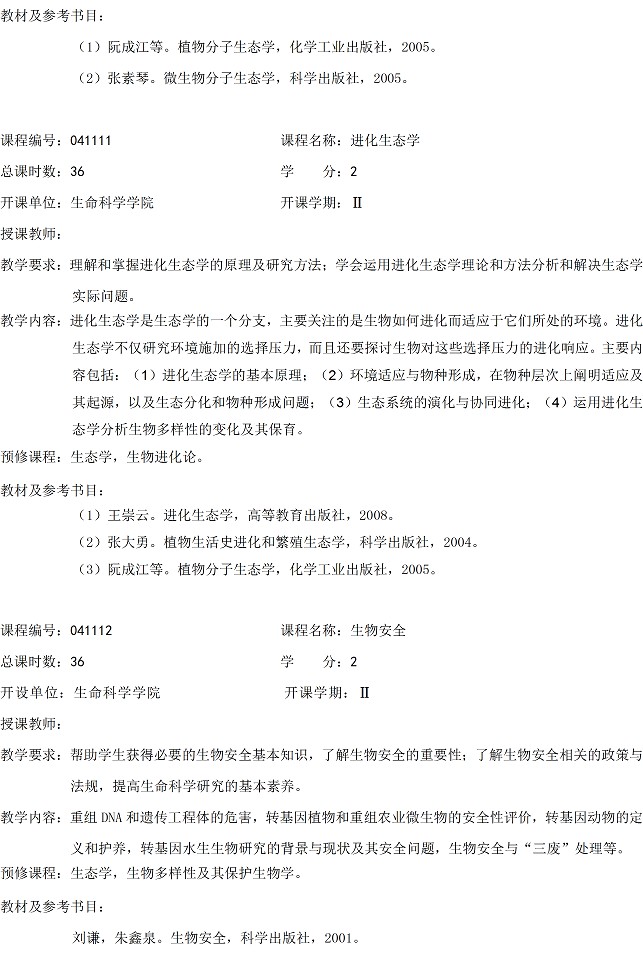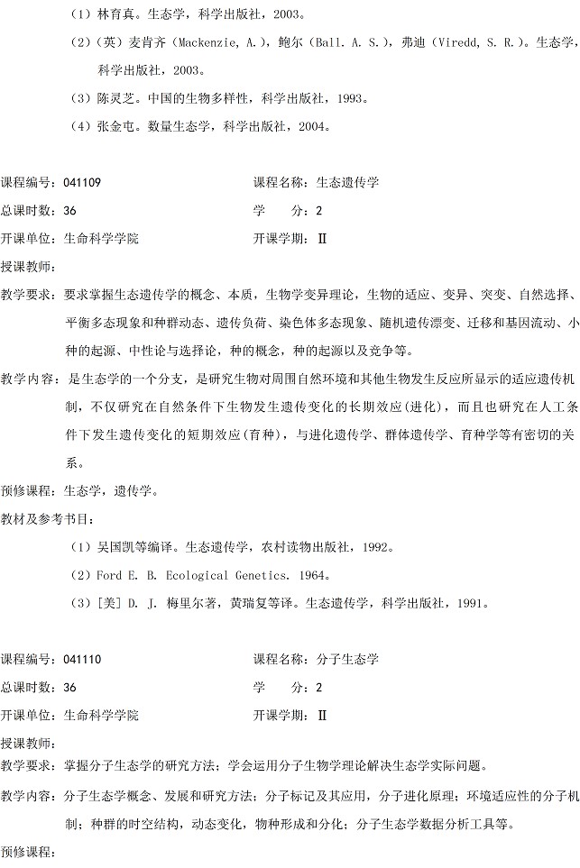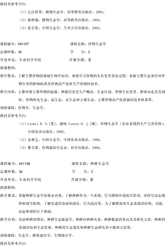 生态学一级学科硕士点
