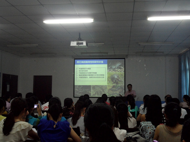 6月13日上午,南京师范大学教授计翔应邀来我校讲学。计教授在生物西楼206会议室做了一场主题为“爬行动物卵胎生进化假说适应意义”的学术报告。生命科学学院相关领导、教师代表、研究生、本科生等100余人共同聆听了此次报告会。