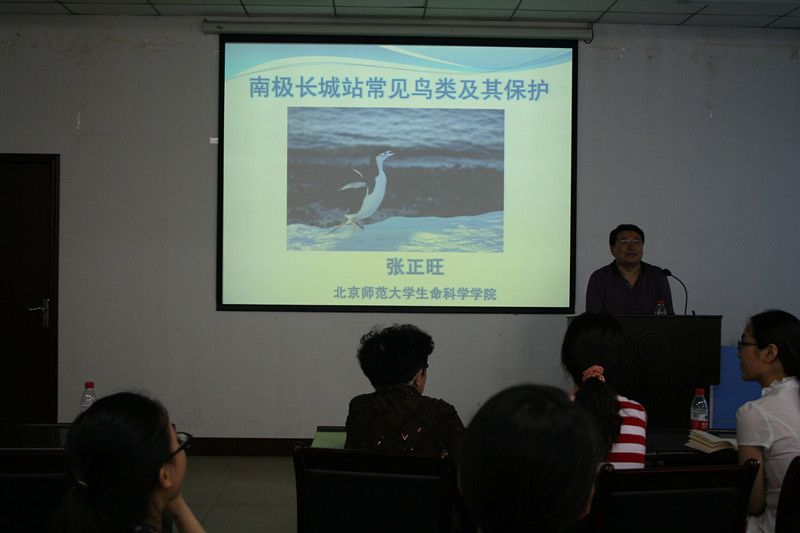 6月16日下午,北京师范大学教授张正旺应邀在我校讲学。张教授在生物西楼206作了一场主题为“南极长城站的鸟类与兽类”的学术报告。生命科学学院相关领导、教师代表、研究生、本科生等100余人聆听了此次报告会。报告会由生命科学学院王海磊教授主持。