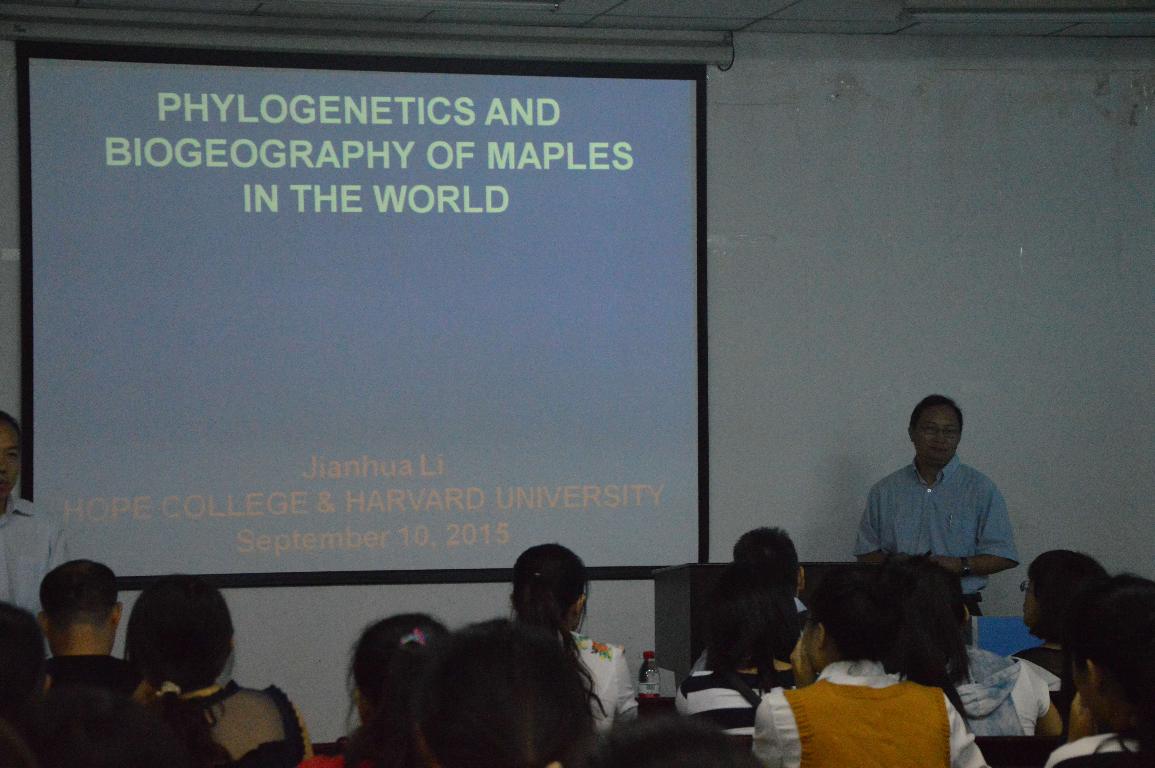 9月10日上午,我校杰出校友,美国密歇根州霍普学院教授、博士生导师李建华应生命科学学院邀请,在生物西楼206会议室做了一场主题为“Maples phylogenetic sand biogeography”的学术报告。生命科学学院王海磊教授,马剑敏教授,王太霞教授,李明军教授,邓传良副教授等带领百余名本科生共同聆听了此次报告会。会议由学院副院长李景原主持。