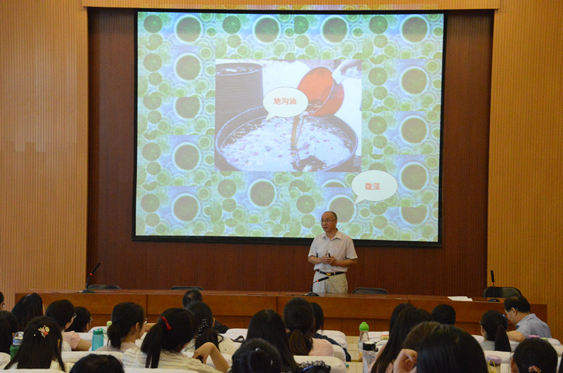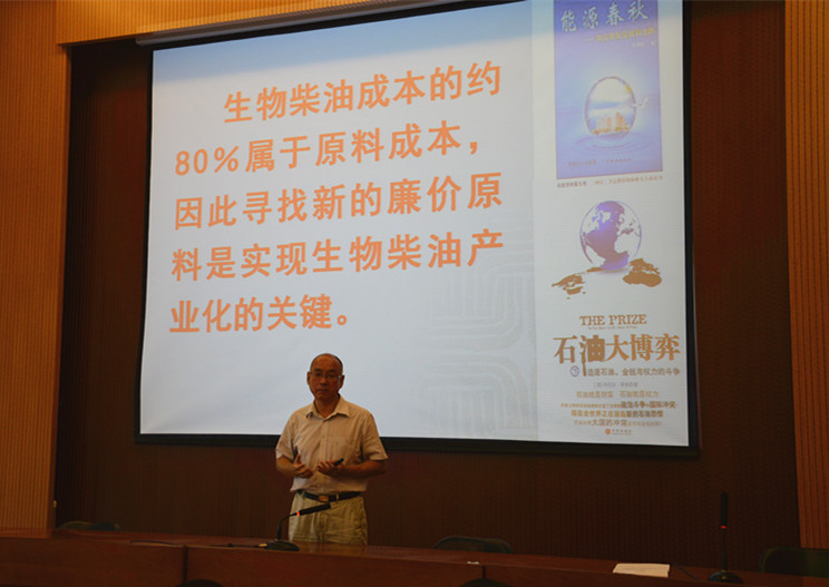杨得坡教授以“中国蝇蛆生物柴油产业化技术研究与开发”为题,分别从新能源与低碳经济、苍蝇与蝇蛆、项目进展、蝇蛆生物柴油的特点、正在做的工作等五方面展开讲学内容。首先,杨教授指出能源短缺问题已经成为制约我国经济发展的重要因素之一,而生物能源作为二十一世纪新能源,它对国家的经济发展有着极其重要的影响。杨教授强调生物柴油是生物能源的重要组成部分,但由于原料成本高昂,生物柴油的研究与开发举步维艰。他表示目前国内外蝇蛆的人工繁殖技术已十分成熟,这对减少生产生物柴油的成本十分关键。杨教授还为在场人员详细介绍蝇蛆具有极大研究价值,蝇蛆生物量是植物生物量的500至1000倍,并且联合国也倡导开发昆虫蛋白,美国、日本等多个国家都推出了昆虫计划,解决未来人类与动物蛋白短缺等问题。报告会中,杨教授诙谐幽默又浅显易懂的讲解,使现场师生获益匪浅。最后,杨得坡教授耐心细致地回答师生们提出的问题,现场气氛活跃。