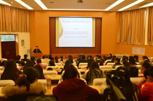 胡赞民学术报告主题为“微藻:一种有效的生物反应器”。报告中,他主要介绍了一般生物反应器的类型、植物生物反应器的种类及特点、微藻作为生物反应器的优点,展示了所在团队在微藻方面的研究成果和未来展望。