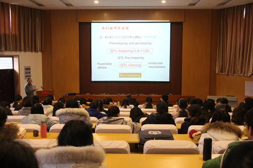 12月22日,应生命科学学院邀请,华中农业大学博士生导师邢永忠教授在生物报告厅作了一场题为“Duplication of an upstream silencer of FZP increases grain yield in rice(FZP上游沉默子的复制显著增加水稻产量)”的报告。学院师生代表共200余人聆听了此次报告。讲座由生命科学学院副院长李建军主持。