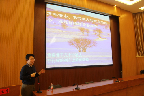 4月19日下午三点,武汉大学教授卢欣应邀来我校,在生物报告厅做了一场题为“晨钟暮鼓:一个西藏鸟类学家的探索与思考”的学术报告,学院相关教职工、研究生代表和本科生学生近百名学生听取了此次报告,报告由学院副院长李建军主持。