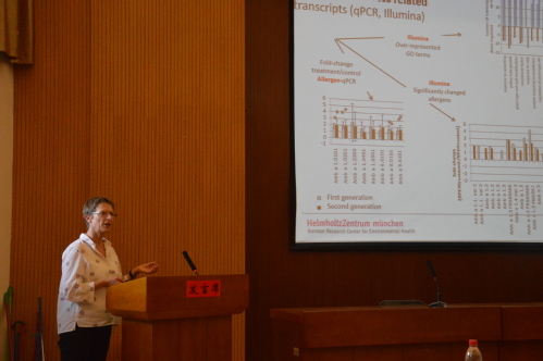 报告会中,Karin教授首先介绍了自身研究团队,并详细讲解了环境对花粉致敏性的影响、环境中的致敏真菌以及应激环境中的与真菌相关的根系三个方面内容。讲解过程中,Karin教授图文并茂,条理清晰,深入浅出地向大家解释了生态系统中过敏原相关研究进展等。报告结束后,Karin教授针对在场师生的踊跃提问给予了耐心细致的解答,报告在师生们热烈的掌声中圆满结束。
