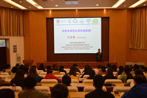 11月20日上午,应我院邀请,中国科学院植物研究所、系统与进化植物学国家重点实验室孔宏智研究员在生物报告厅进行了一场题为“花的多样性及其形成机制”的学术报告。报告会由我院院长余国营主持,学院部分教师及百余名研究生代表聆听了本次学术报告。