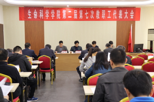 随后,会议听取了院长余国营做的《强化责任担当 狠抓任务落实 扎实推进学院各项工作取得新进展》工作报告。报告从教学工作、学位与研究生教育、学科建设与科研、师资队伍建设、公用实验平台及标本馆、国培计划、工会工作、实验室安全、学生教育与管理、党的建设、宣传思想工作等十个方面工作对学院2018年工作进行了回顾,对2019年工作的总体思路和主要任务向代表们进行了汇报。
