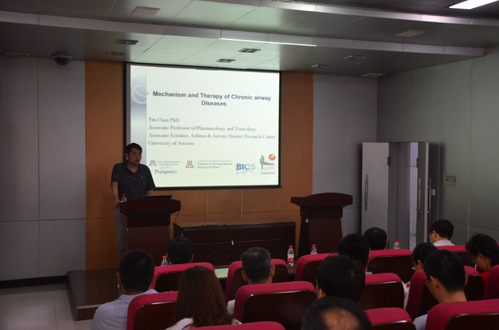 6月10日上午,美国亚利桑那大学药学院药理学和毒理学副教授陈寅应邀到我校进行学术交流,并在生物东楼报告厅作了题为 “Mechanism and therapy for airway diseases” 的学术报告。报告会由生命科学学院院长余国营教授主持。