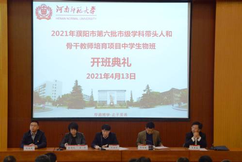 4月13日上午,2021年濮阳市第六批市级学科带头人和骨干教师培育项目中学生物班开班仪式在我校生命科学学院报告厅举行。副校长郭海明,濮阳市教育局副局长乔明福以及我校继续教育学院、生命科学学院培训负责人出席。开班仪式由继续教育学院院长李津主持。