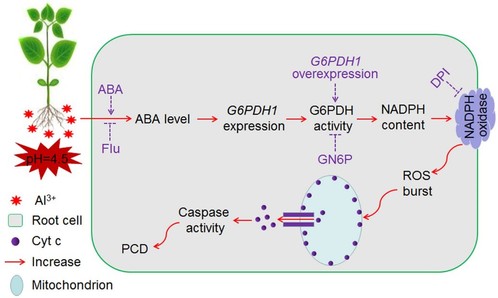 铝毒害是酸性土壤地区限制农业生产的主要逆境因子。铝毒最显著的特征是抑制植物根系生长。极低浓度的铝能在短时间内迅速抑制根系伸长,进而影响水分和矿物质的吸收,最终导致作物产量降低。铝毒抑制植物根伸长的机制长期以来都是研究者想要揭示的重要科学问题。王华华课题组主要从事植物与环境互作方向研究。课题组前期研究发现,铝诱导的根尖细胞程序性死亡(PCD)与大豆根伸长抑制成正相关。然而,对于铝是如何激活PCD发生的具体机制还知之甚少。该研究揭示了脱落酸(ABA)和葡萄糖6-磷酸脱氢酶(G6PDH)介导铝诱导大豆根尖PCD发生的调控机制,对植物的铝毒性机制提出了新的见解,为筛选和培育耐铝品种提供了重要借鉴。